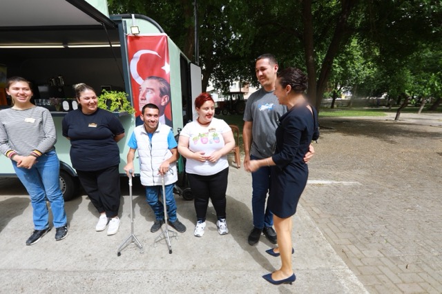 İZMİR- Efes Selçuk Belediye Başkanı Filiz Ceritoğlu Sengel, Engelsiz Kafe’de çalışan gençleri ziyaret etti.