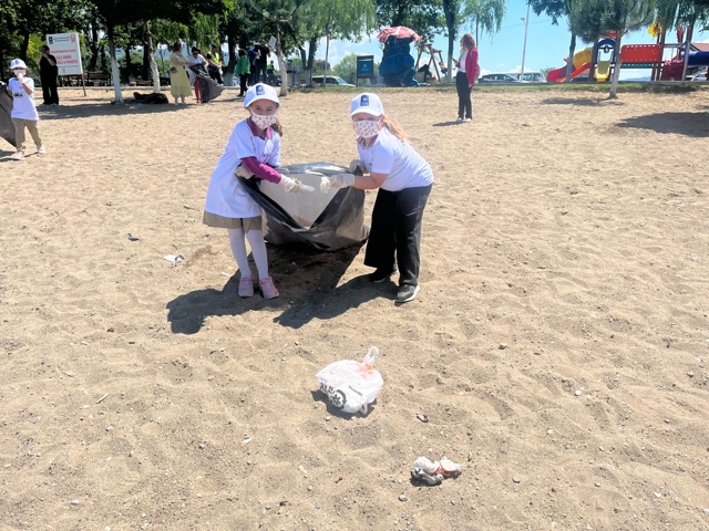 BURSA – Bursa Büyükşehir Belediyesi’nin ‘Doğa için buluşuyoruz’ temasıyla düzenlediği ‘Çevre Haftası Şenliği’ kapsamında ilkokul öğrencileri tarafından İznik İnciraltı Halk Plajı’nda kıyı temizliği yapıldı.